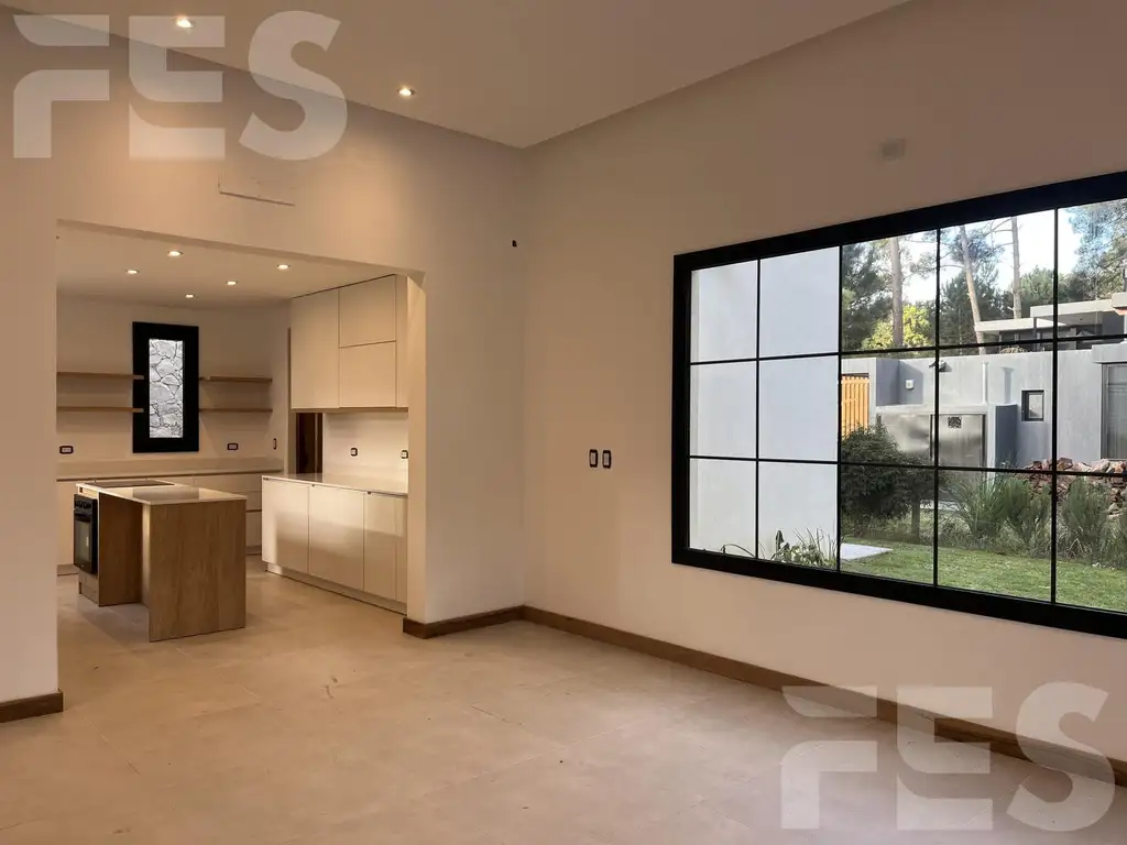 Living comedor con amplios ventanales, cocina con isla, lavadero y toilette.