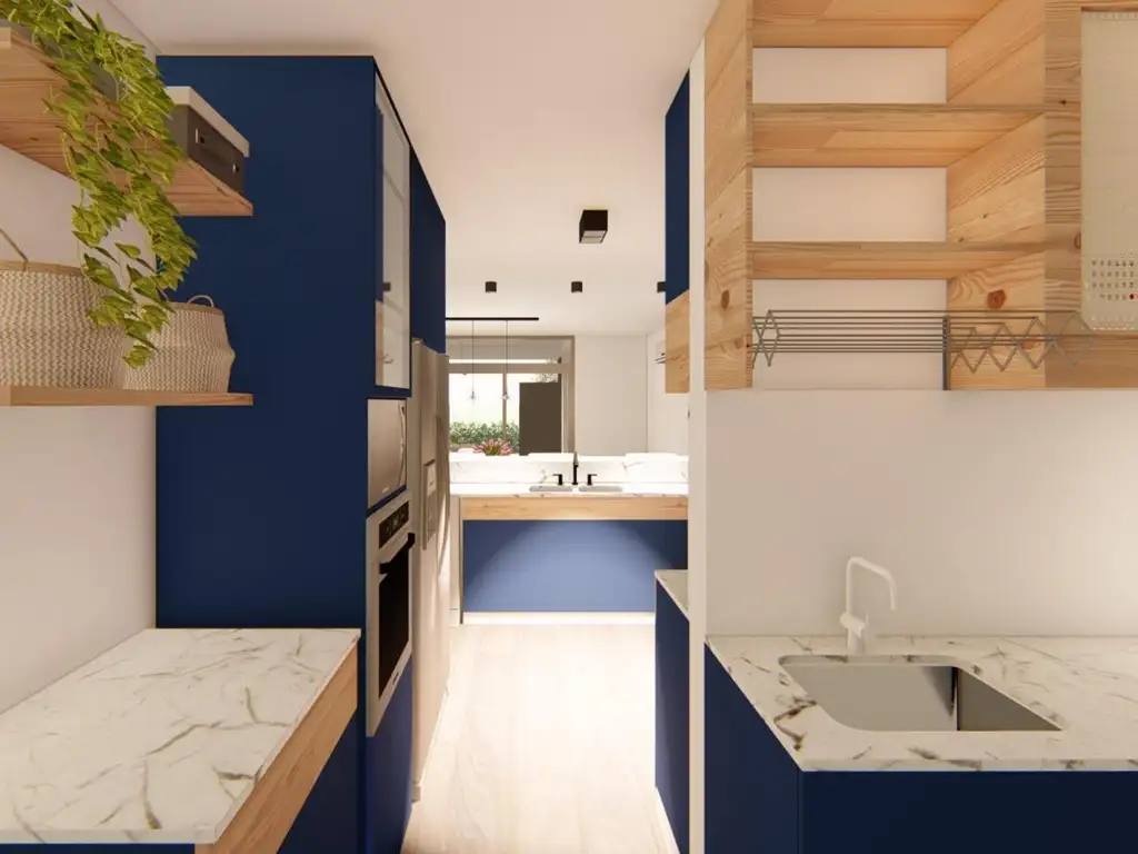 La propiedad cuenta con una galería para dejar un vehículo, un living-comedor amplio con la posibilidad de poner un sillón para tener momentos de relajación después de un largo día, una barra desayunadora, cocina y lavadero. También dispone de dos habitaciones, un antebaño, un baño en el interior de la casa y un baño de servicio.