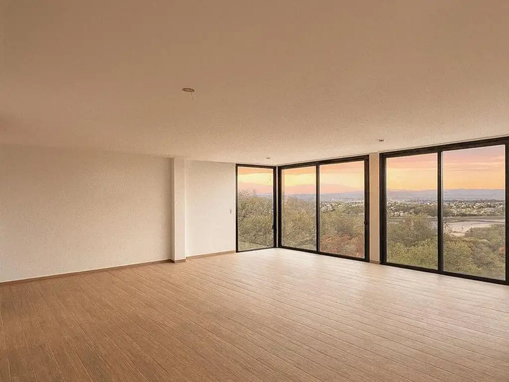 • Planta baja (120 m²): amplio living-comedor con ventanales, cocina integrada, 2 dormitorios y 2 baños (uno en suite).