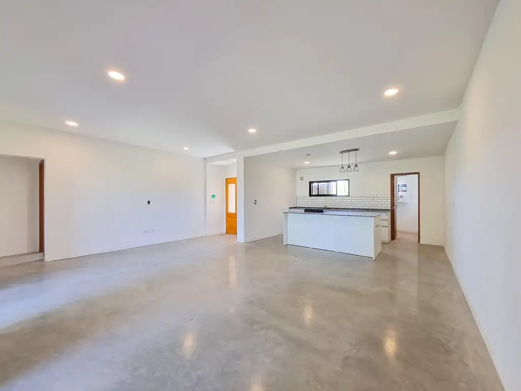 Se ingresa al living comedor con cocina semi integrada por una isla y posee: