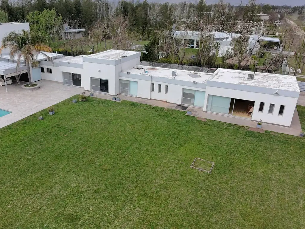 Casa de 12 años de antiguedad, Sobre lote total de 80 mts. de frente por 100 mts. de fondo total 8000 m2 y consta de 350 m2 con de galerías, cochera para 2 autos, quincho, PLANTA BAJA : 3 habitaciones , 3 baños completos , patio amplísimo Living-comedor , gran Cocina comedor , lavadero , y gran terreno arbolado con pileta de 5 x 10 mas un espejo de agua de 5 x 3 y en la PLANTA ALTA del quincho y lavadero hay una habitación tipo departamento de huéspedes con baño , toda la casa con calefacción por estufas tiro balanceado y aires acondicionados Split , Finísimos detalles de Terminaciones , expensas promedio $ 940,000