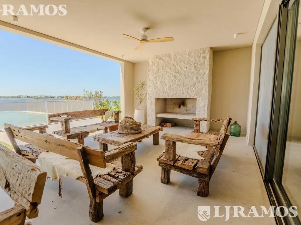 CASA ESTILO MEDITARRANEO, IMPECABLE Planta Baja : El garage, la rampa para los autos, y todos los escalones de a parte exterior son de hormigón armado, con productos de terminación de EDFAN. Se ingresa a la propiedad por 3 lugares, puerta principal y por el garage, ambas de madera de lapacho, y también por el lavadero. Por la puerta principal accedes a un patio interno con varios canteros, y el piso también de hormigón Dependencia de servicio completa con su baño en suite, con ducha + lavadero completo + living comedor muy amplio con la cocina integrada. En el bajo escalera hay una cava de vinos + toilette completo con antebaño + playroom o family u oficina ( todo el cableado interno para armado de sonido para la tv). En el living hay un hogar de leña. Exterior: Galería amplia, en L, que cuenta con un baño completo, bacha, heladera, parrilla completa + 1 hogar exterior revestido en PIEDRA mar del plata Pileta de 4 x 10, con borde infinito, revestido con venecitas españolas blancas, iluminada. Deck y lugar de descanso en LAPACHO, + muelle con pérgola en LAPACHO PASTO GRAMA BAHIANA + RIEGO COMPLETO EN TODO EL JARDIN Planta Alta 4 DORMITORIOS EN SUITE, TODOS LOS ABAñOS CON ANTEBAñO LUGAR DE ROPA BLANCA EN EL PASILLO, CENTRAL BALCON INMENSO CON UN LIVING EXTERIOR EN LOS DOS DORMITORIOS DE LA LAGUNA Y EN LOS DOS DORMITORIOS QUE DAN A LA CALLE, TAMBIEN CADA UNO CON SU BALCON Detalles .El garage es semicubierto, con loza arriba, y está previsto la posibilidad de cerrar la pared que falta, colocar un portón eléctrico y hacerlo totalmente cubierto. esta todo pre instalado para eso .La cocina tiene horno SMEG eléctrico, pero hornalla SMEG A gas. . Pisos abajo y arriba de porcelanatos símil madera, en la galería porcelanatos de SBG, antideslizante 90x 90, en el balcón un porcelanato símil piedra. . EL toilette, el cuarto principal, y el baño principal, tiene en paredes y techo ESTUCO, realizado por UPSTAIRS . TODAS LAS ABERTURAS son de GRUPO NORTE ( A40 aluminio) . La casa tiene 7 baños, todos con inodoros y bidet FERRUM, y griferías FV, y espejos con marco de madera, iluminados . Cuenta con 2 calderas BAXI, 1 PARA CADA PISO . La bomba presurizadora es de velocidad variable marca ESPA, y el origen de la misma es ESPAñA . 2 tanques cisternas enterrados . Sistema de limpieza del agua y del sarro mediante impulsos. Tiene colocado, antes de la bomba, un sistema alemán marca CALMAT . INTERNET toda la casa está equipada con 5 repetidores marca UBIQUITI, y todo cableado con cable categoría 6 . PINTURA tanto interior como exterior es TARQUINI, la línea ATENAS FINO. . TODAS LA CASA TIENE CORTINAS DE TELA + BLACKOUT . LOZA radiante : en toda la casa, incluyendo la galería y el baño exterior. y cada ambiente tiene su TERMOSTATO DIGITAL INDEPENDIENTE, se maneja desde el celular, y al estar individualizado, es super eficiente. . Todos los ambientes, tiene aparte SPLIT FRIO / CALOR . DINTEL DE LA CASA ES 2,40 ( PUERTAS, VENTANAS) Costas es un Barrio Ubicado sobre el Lago Central de Puertos. Todos los lotes con costa al lago central de Puertos. Lotes de 933m2 promedio. Club House con Pileta y 2 Canchas de Tenis. Puertos es tranquilidad y contacto con la naturaleza. Y a la vez, toda la comodidad y la infraestructura de una ciudad. Un lugar seguro en un entorno único. Cultura ecológica. Diseño orgánico de los espacios, para simplificar la movilidad. Eco Walking Community. Aire puro, bicicletas, botes de remo. Un trazado inteligente, con bicisendas que unen cada punto de la ciudad. Y todas las áreas de servicios ubicadas estratégicamente cerca.