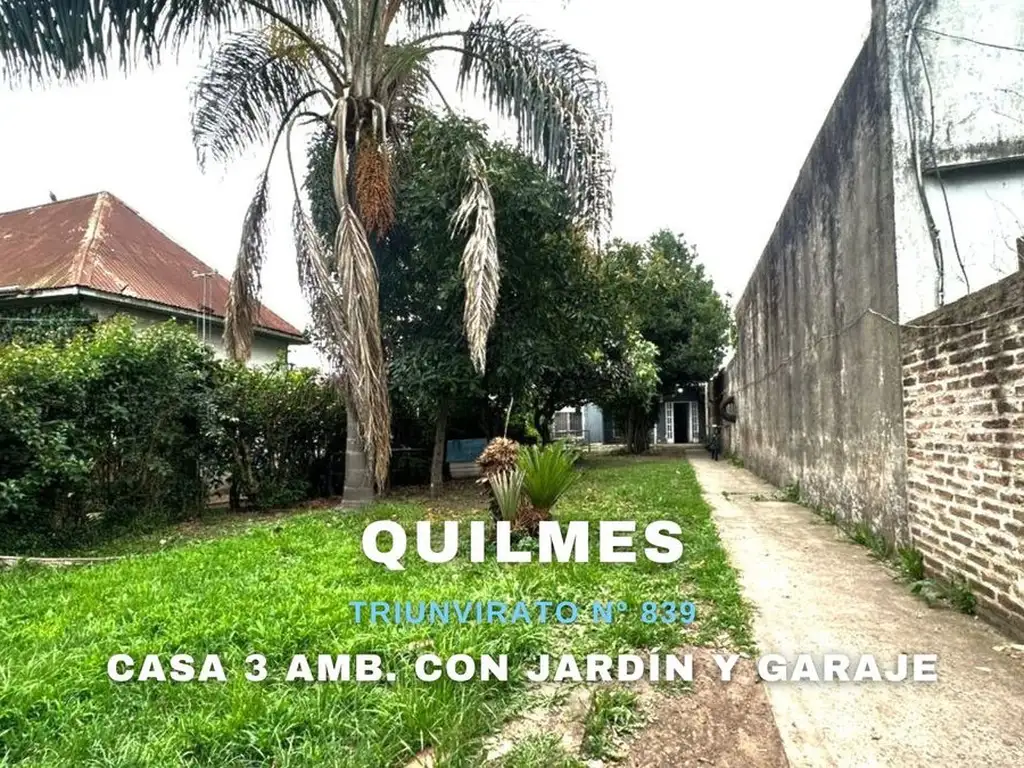 VENTA CASA 3 AMBIENTES CON JARDÍN Y GARAJE QUILMES