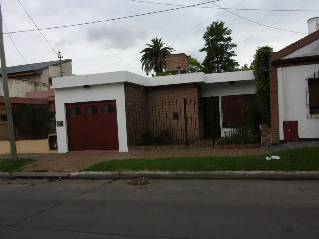 CASA DE CUATRO AMBIENTES EN UNA PLANTA CON FONDO VERDE Y QUINCHO.