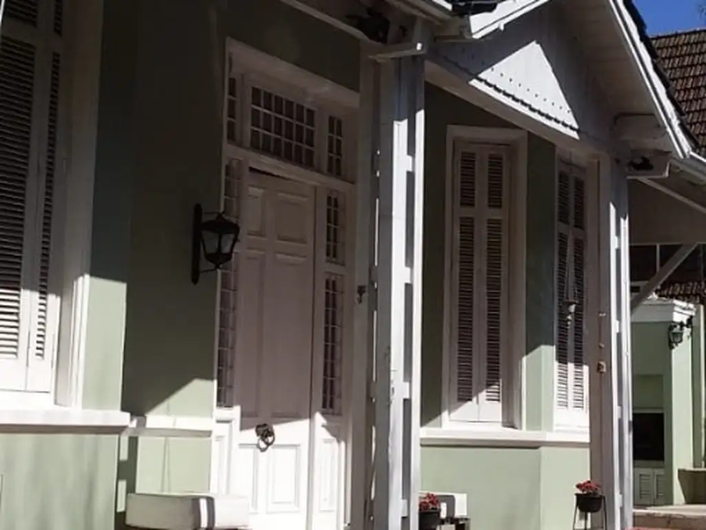 Por la calle Libertad se encuentra el acceso principal con un hermoso jardín. Importante entrada a la casona rodeada de galería, puerta de entrada de doble altura de madera maciza con muy buenos herrajes. Una vez dentro de la propiedad , hall de distribución con importante escalera de roble al frente , a la derecha living comedor con ventanales al frente y sobre el lateral, hogar revestido mármol y ornamentaciones en madera ( adaptado a gas) , piso de toda la planta de madera con marquetería, cielo raso en madera lo que aporta calidez al ambiente, la cocina separada es amplia , con muebles blancos completos, mesada y revestimiento en granito, cocina de 5 hornallas, barra para desayunar, ventanal al sector de piscina, desde la cocina se sale directamente a la zona de piscina y parrilla. Lavadero.