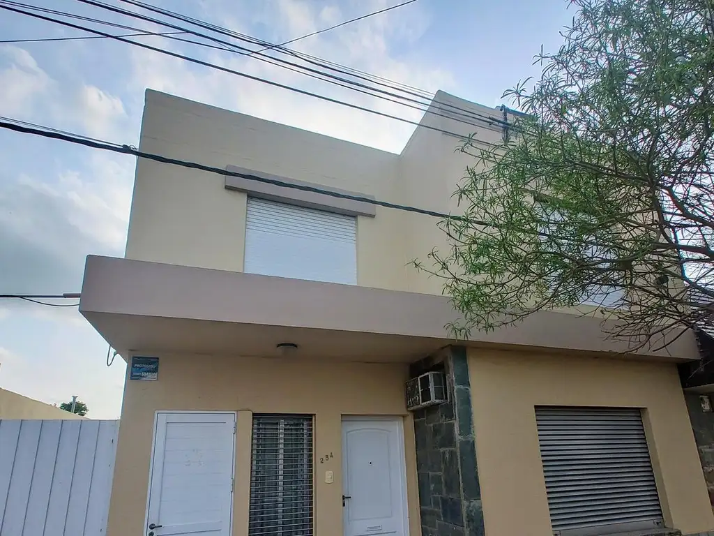 Esta propiedad cuenta en la planta baja con un amplio living comedor, cocina separada, dos habitaciones, un baño y un patio seco. Además, dispone de una entrada independiente para vehículos que conduce a un galpón multifuncional, perfecto para cualquier proyecto o necesidad de espacio adicional. En la planta alta, encontrarás un departamento con entrada independiente, cuenta con cocina comedor, dos habitaciones, baño, lavadero y una terraza privada.
