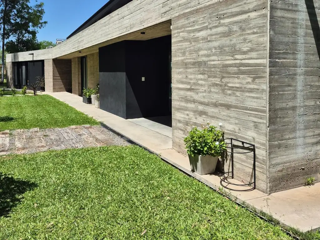 La Residencia: Arquitectura Minimalista y Vistas Soñadas Con 270 m² construidos, la casa se implanta genialmente sobre una depresión natural del terreno, lo que la eleva para dominar el paisaje, ofreciendo vistas perfectas al canal navegable y al parque. De marcado estilo minimalista, ofrece una orientación y ventilación cruzada perfectas. El interior es cálido y confortable, con un living comedor diseñado para el disfrute. Cuenta con 3 dormitorios (el principal en suite) y 3 baños. La joya exterior es su galería con parrillero, que se fusiona con una espectacular pileta infinita, regalando vistas ininterrumpidas al arroyo.