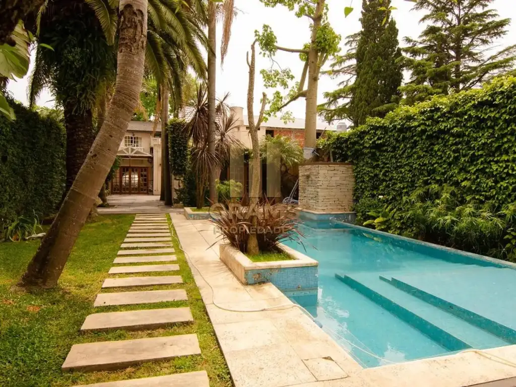 Gran parque con pileta de material y cascada. Cuenta además con departamento independiente totalmente equipado con vistas al jardín y pileta.