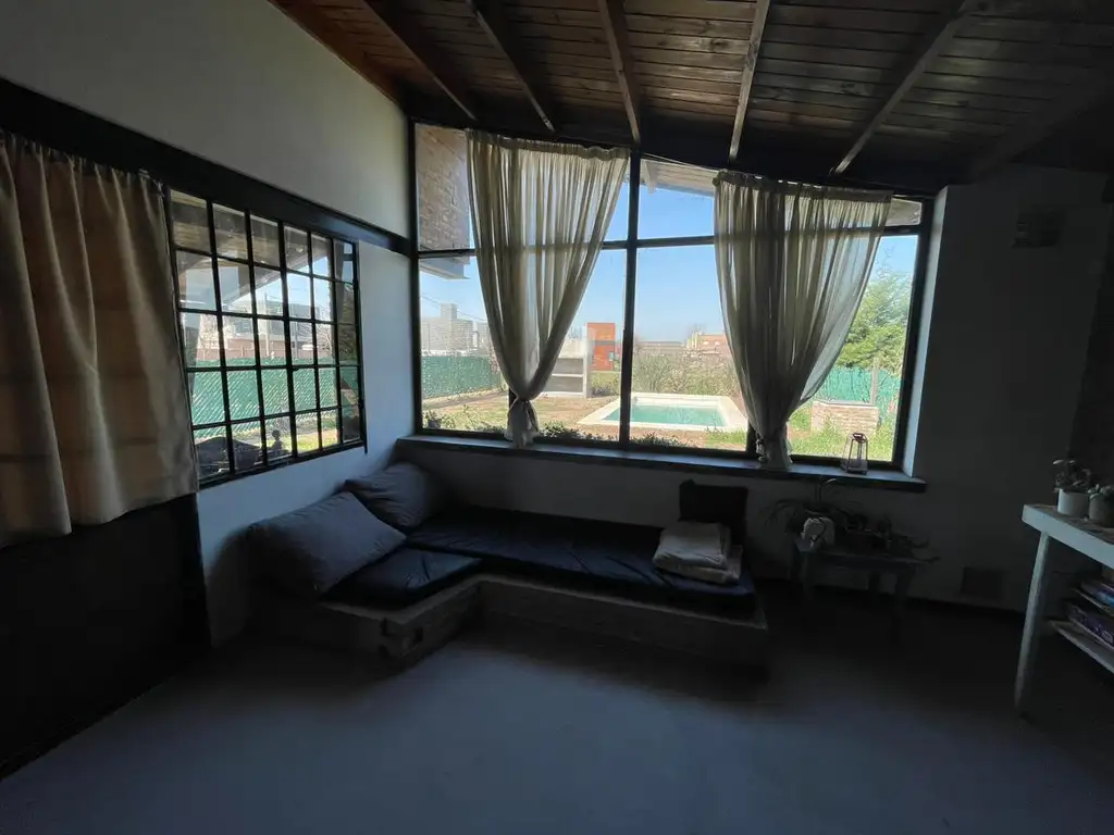 Una propiedad de material desarrollada en una sola planta, AMPLIO LIVING COMEDOR INTEGRADO CON VISTA AL PARQUE, HERMOSOS VENTANAL, COCINA, LAVADERO, TRES DORMITORIOS, Y TRES BAñOS, GALERIA SEMI CUBIERTA, INGRESO VEHICULAR, PARQUE CON PSICINA.