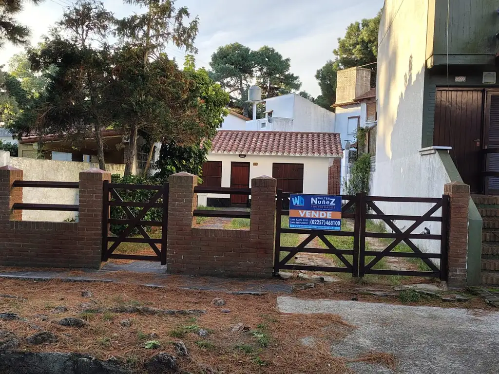 Venta de Casa 4 AMBIENTES, San Bernardo Casa PH al frente con lote propio de 7.50 x 30, ubicada en la calle Hernandez al 400 entre las calles Catamarca y Mitre a solo 450 metros del mar, 350 metros de Chiozza (calle principal) y a 300 metros al norte de Av. San Bernardo, hermoso barrio asfaltado, con vecinos permanentes, tranquilo y arbolado. La casa esta construida, retirada de su linea municipal unos 13 metros, lo que produce un lindo parque propio y entrada de vehículo para 2 coches. Ambientes pequeños, estar comedor con placard empotrado, cocina separada, 2 pequeños dormitorios y el baño en el medio de ambos. Atras tiene un patio generoso, con lavadero y parrilla, también tiene una construcción moderna sobre una de las medianeras lo cual es un departamento de 1 ambiente, compuesto de dormitorio con baño completo en suite y un ambiente lindero hoy deposito, pero adaptado para realizar la cocina. La casa esta construida pegada una medianera, lo que genera por la otra un pasillo, donde se puede acceder directamente al patio y al departamento, sin entrar por la casa. La construcción esta muy bien mantenida, se vende con muebles, gas envasado y agua por bomba (pozo), SIN EXPENSAS