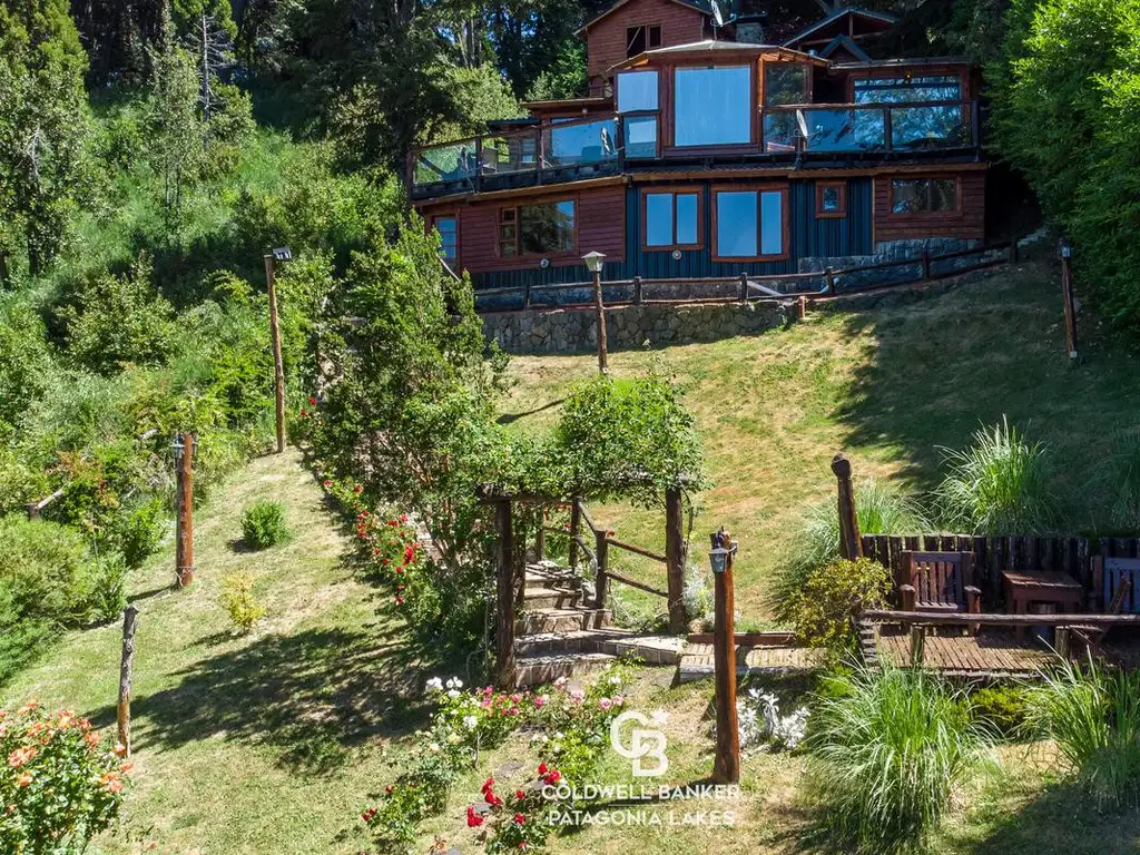 La casa principal está construida en troncos de ciprés, madera y piedra. Cuenta con 7 ambientes, 4 habitaciones y 3 baños en suite. La habitación principal tiene un jacuzzi, ducha escocesa, sauna y terraza privada con vista al lago . Todos los ambientes tienen aire acondicionado, doble sistema de calefacción, central y por tiro balanceado.