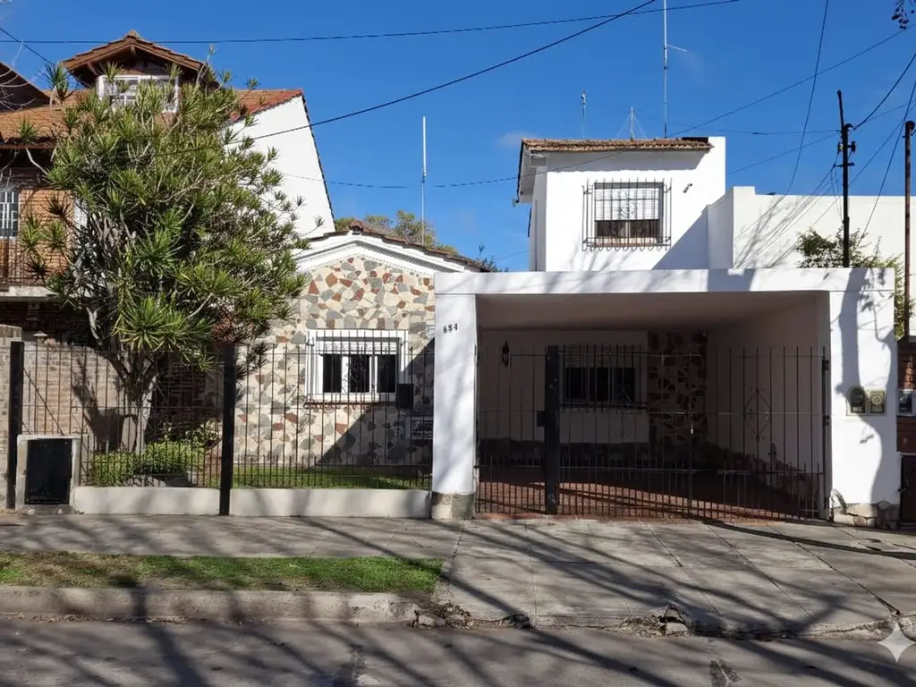 Se trata de una casa tipo Chalet en dos plantas al frente y otra casa más pequeña detrás separada por un patio con parrilla, a la cual se accede de forma independiente por un pasillo exterior.