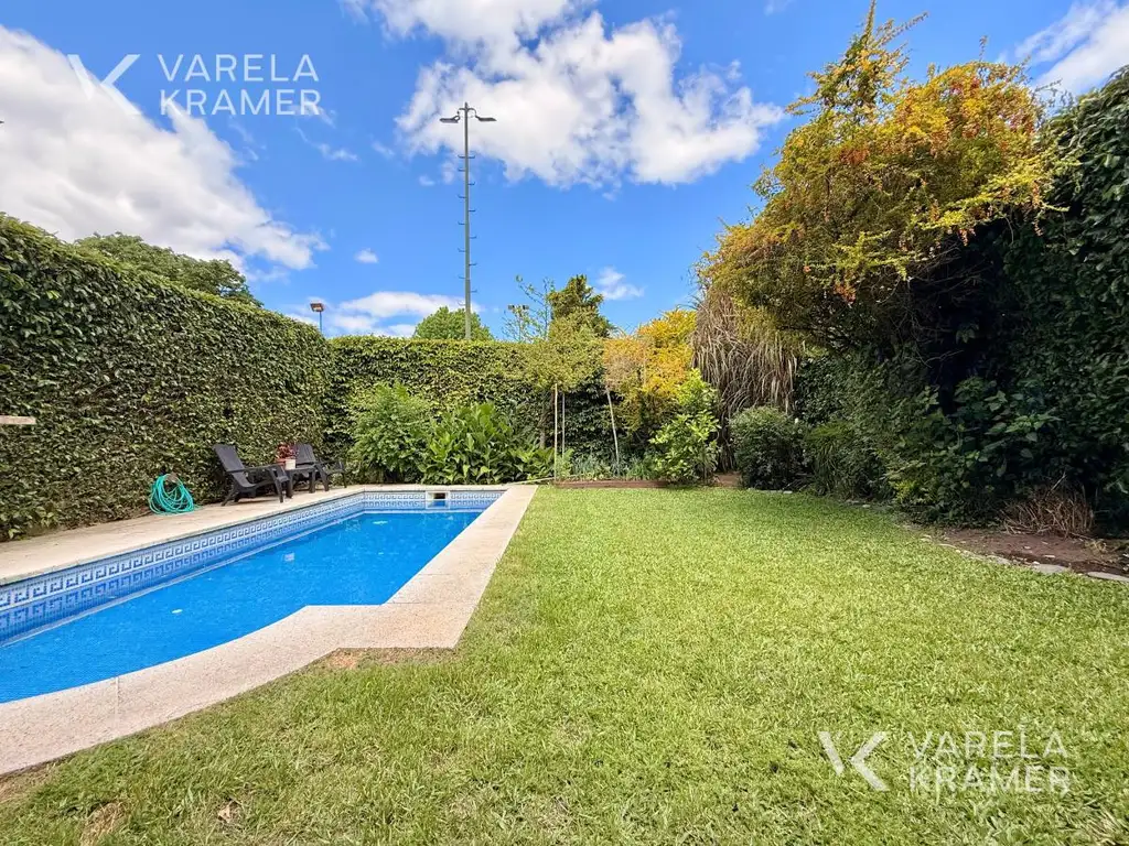 Al ingresar por la puerta principal, encontramos un amplio Living-Comedor integrado a la Cocina, súper luminoso y con salida directa a la gran galería. Toilette de recepción. En la galería se ubica un amplio lavadero con bastante espacio de guardado. Parrilla. Pileta revestida en venecitas y jardín arbolado encantador.