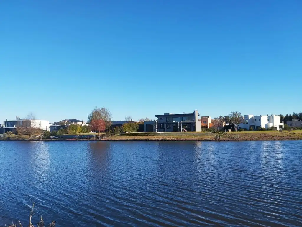 La Mayor parte de la vivienda se desarrolla en Planta Baja con una fachada con detalles en piedra, madera con un estanque junto a la pérgola para 2 autos bajo techo y 2 autos más , una puerta principal imponente con eje pivotante de madera dura ,por dentro un gran ambiente estarcomedor, con hogar, isla, de concepto moderno abierto con todas sus visuales hacia la laguna. Además cuenta con una zona para ubicar la TV con un cerramiento , también puede ubicarse allí un office xq cuenta con puerta estilo tranquera o similar