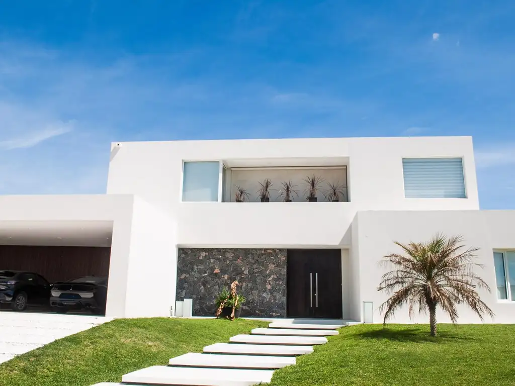Planta Baja: Amplio living-comedor con biohogar y vistas panorámicas a la laguna, sala de TV y cocina con isla, electrodomésticos premium y amoblamientos de diseño. Comedor diario y pantry independiente. Dos dormitorios de huéspedes, toilette, baño completo y dormitorio de servicio. Oficina con vistas al lago, lavadero independiente, garage para tres autos y amplio depósito/taller.