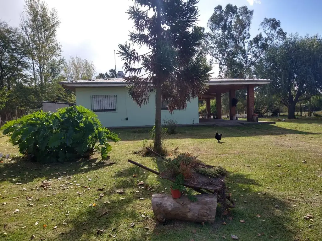 Casa / Quinta con un lote de 77 de frente x 70 de largo, que consta propiedad en una planta, dos galerías, cocina comedor amplia con espacio para barra desayunadora, living con salamandra, pisos de cerámicos y techos de madera, baño completo, lavadero y dos habitaciones con placard empotrado.