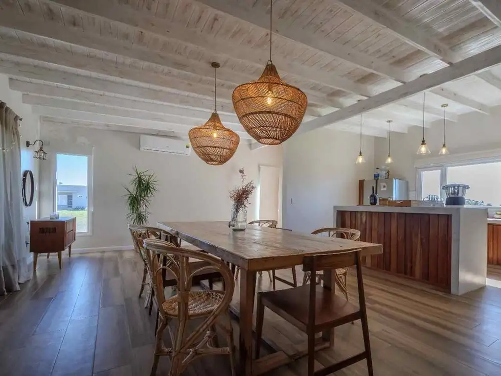 En la localidad de Santa Elena, partido de Mar Chiquita se desarrolla esta casa a estrenar con pileta climatizada, galería con parrilla e ingreso para 1 o 2 vehículos.