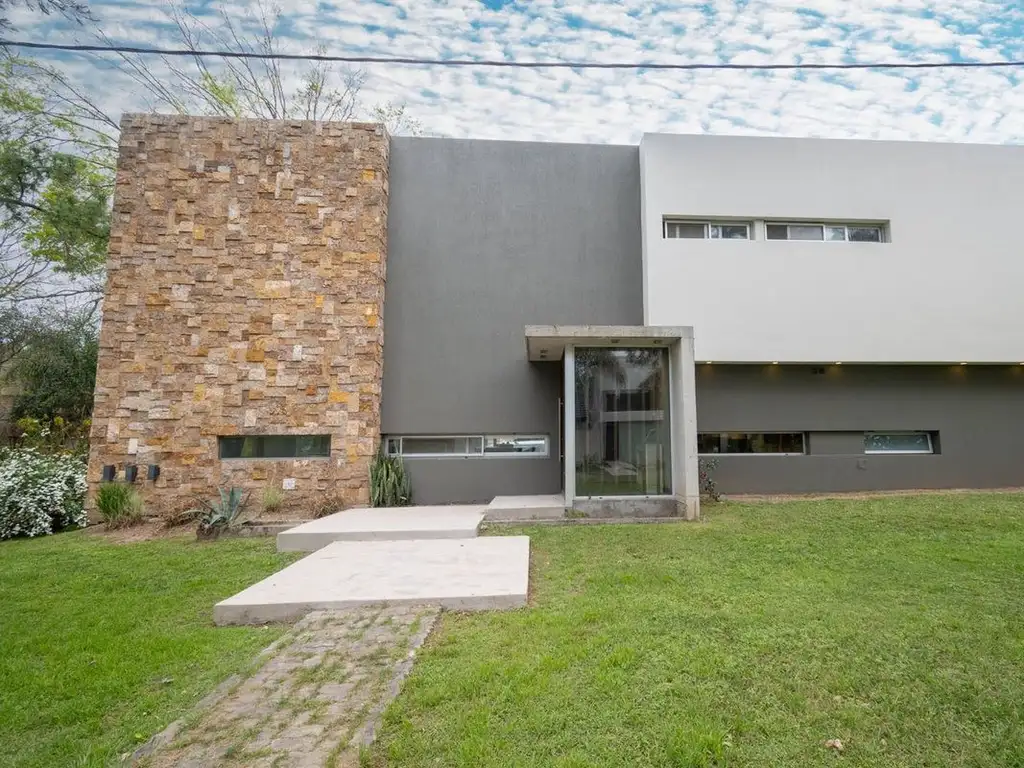 Casa imponente en Country Los Molinos, de estilo moderno y elegante, diseñada con grandes superficies vidriadas que llenan cada ambiente de luz natural y brindan vistas abiertas al jardín.
