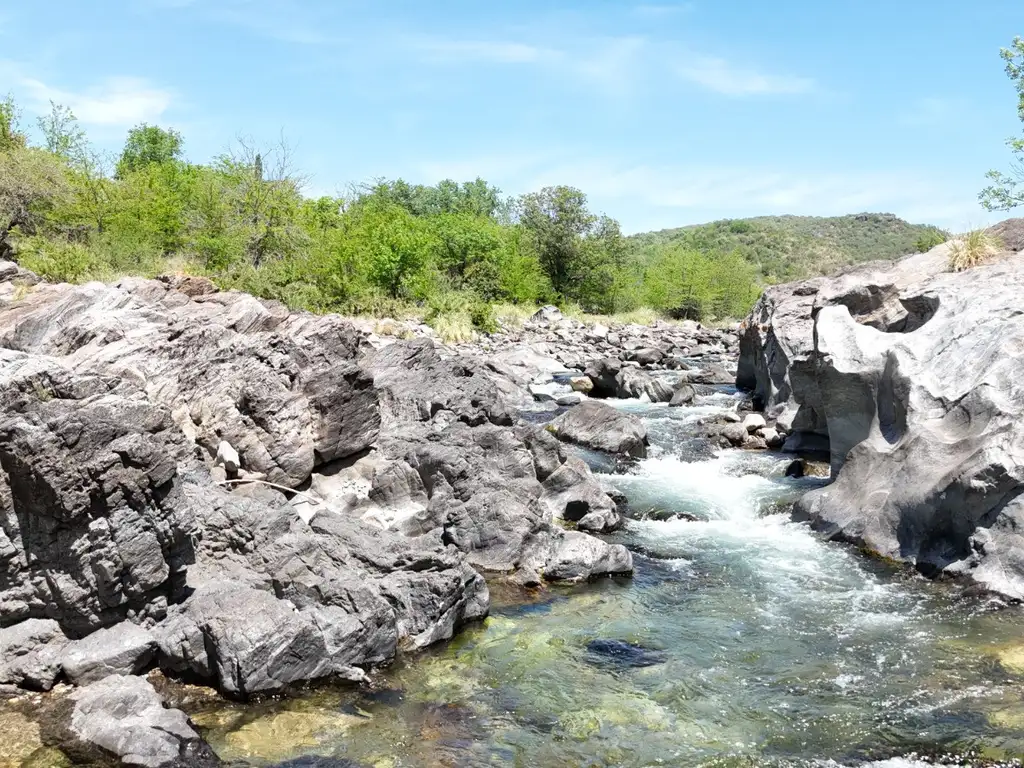 La fracción cuenta con aproximadamente 120 metros de costa sobre un río de aguas claras, rodeado de vegetación autóctona, árboles añosos y vistas abiertas a las sierras.