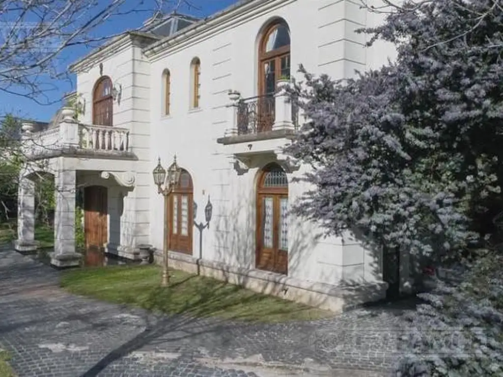 Galería con pisos damero propio del estilo francés. Jardín muy arbolado. Entrada para varios autos con entrada imperial y estacionamiento semi cubierto para un vehículo que comparte con sector parrilla.-