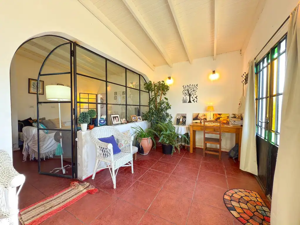 La propiedad se destaca por su luminosidad: los amplios ventanales de hierro y vidrio conectan los ambientes entre sí y con el exterior, generando espacios cálidos y funcionales.
