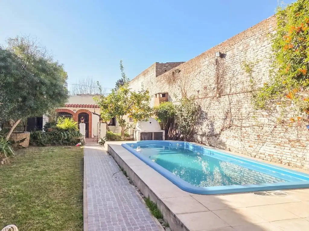 Venta de casa con 3 dormitorios, living, cocina/comedor, tres baños, y patio verde de grandes dimensiones arbolado con piscina y un quincho con baño, habitación y comodín.