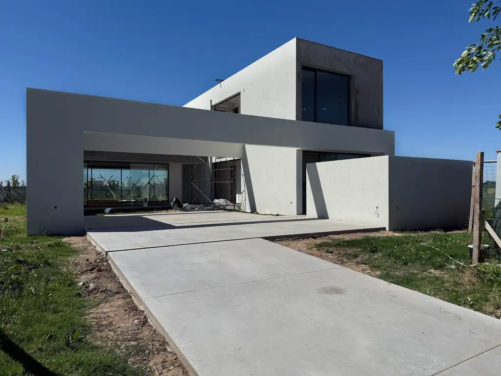 Casa de diseño moderno y minimalista con finos detalles constructivos en barrio cerrado desarrollada en casa en dos plantas, diseñada para satisfacer las necesidades de una familia, combinando funcionalidad, flexibilidad y posibilidades de crecimiento futuro.