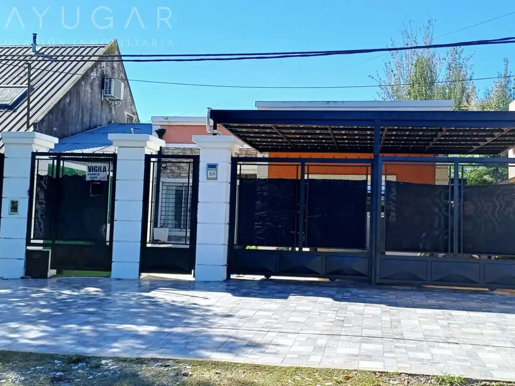 La casa cuenta con un amplio living comedor, cocina completamente amoblada, tres amplios y luminosos dormitorios, uno en suite, baño completo, lavadero, cochera cubierta para dos autos, patio trasero con parrilla y amplio quincho, cuenta además con una práctica oficina, y un depósito. La casa tiene un estilo moderno y funcional, además de una importante calidad constructiva, aberturas DVH, tarquini, aire acondicionado en habitaciones, etc.