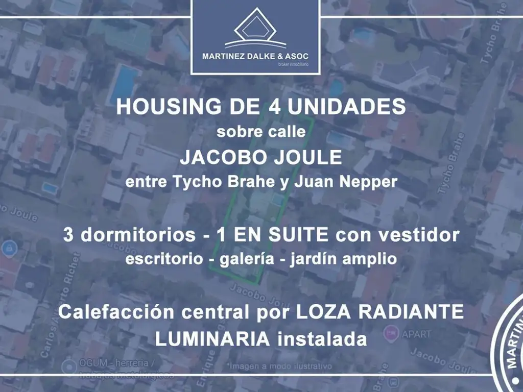 Ubicada en housing de cuatro unidades, en inmejorable entorno del Barrio Villa Belgrano, sobre calle Jacobo Joule, a pocos metros de calle Juan Nepper.