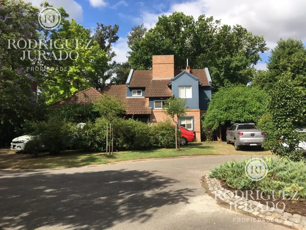Exterior: Entrada para varios autos, cochera techada y otra cochera con pérgola. Galería techada con amplia parrilla (opción a gas), jardín rodeado de árboles y pileta de 8 x 4.