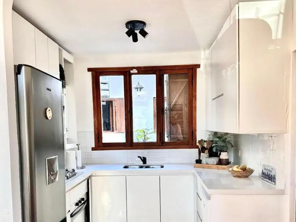 Se ingresa al living comedor el cual tiene un gran ventanal al frente, a continuación tenemos la cocina totalmente modernizada con muebles completos y mesada de silestone blanco con ventana al patio, lo cual da luminosidad y excelente ventilación. Toilette de recepción.