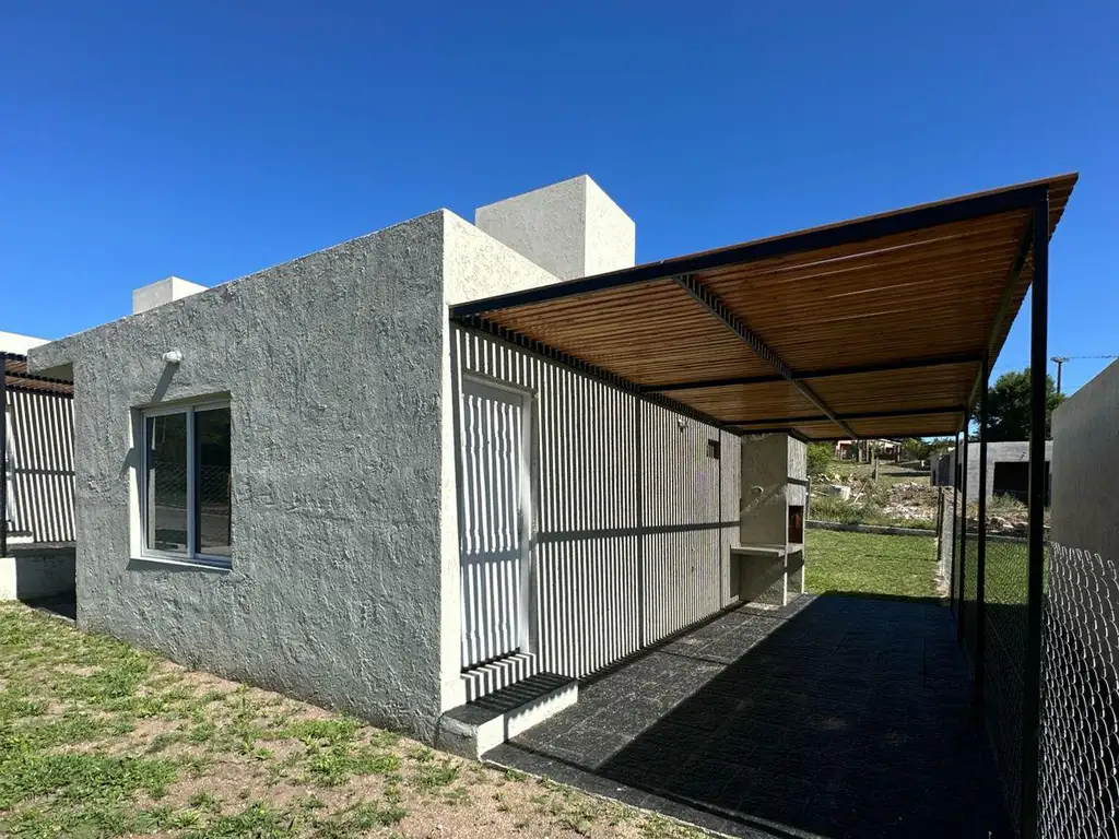 La propiedad se encuentra construida con los siguientes materiales de calidad: paredes de material, aberturas de aluminio con rejas, pisos cerámicos, techo de losa, puertas de ingreso de chapa inyectada, puertas interiores placa de madera y tanque de reserva de agua. La instalación eléctrica cumple con la normativa vigente de EPEC con líneas preparadas para instalar aires acondicionados en cada ambiente. Posee cámara séptica y sangría destinada a desechos cloacales, ubicadas en el frente.