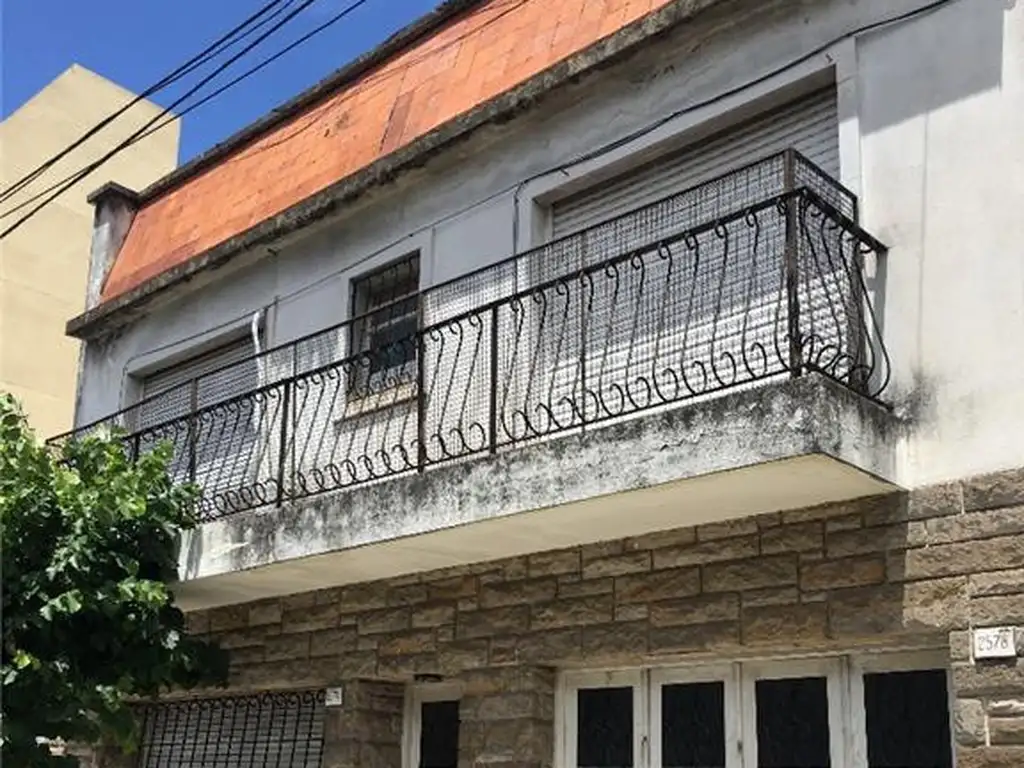 Planta Baja: Living comedor (5x5) con gran ventana al frente (con reja artística y cortina de enrollar de madera), y piso de mosaicos. Garaje (6x3) con puerta de madera rebatible de cuatro hojas, piso de mosaicos, gran placard con baulera, puerta a comedor diario y puerta plegable a living. Hall de distribución con piso de mosaicos, con escalera a planta alta y toilette de recepción (en bajo escalera). Gran comedor diario (5,5x4) con piso de mosaicos, dos placares, estufa de tiro balanceado, ventana (con reja y cortina de enrolla de madera) y puerta (con reja) a patio fondo. Amplia cocina (4x3) con muebles completos, piso de mosaicos, despensa, calefón, ventana y puerta al patio/fondo. Patio/fondo (8x5) con lavadero semicubierto con pileta de lavar y escalera externa a planta alta.