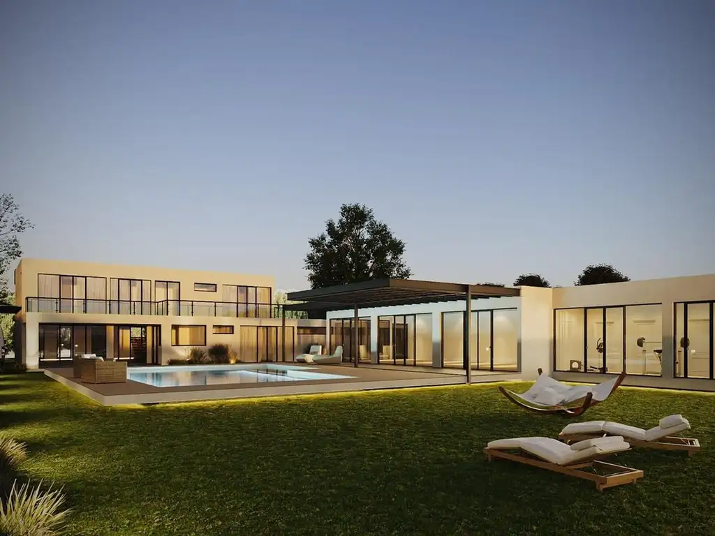La propiedad se distingue por su diseño moderno y sofisticado, con líneas rectas, volúmenes puros y una cuidada combinación de materiales nobles como hormigón visto, madera y grandes superficies vidriadas, que aportan luminosidad natural y una fuerte conexión con el entorno.