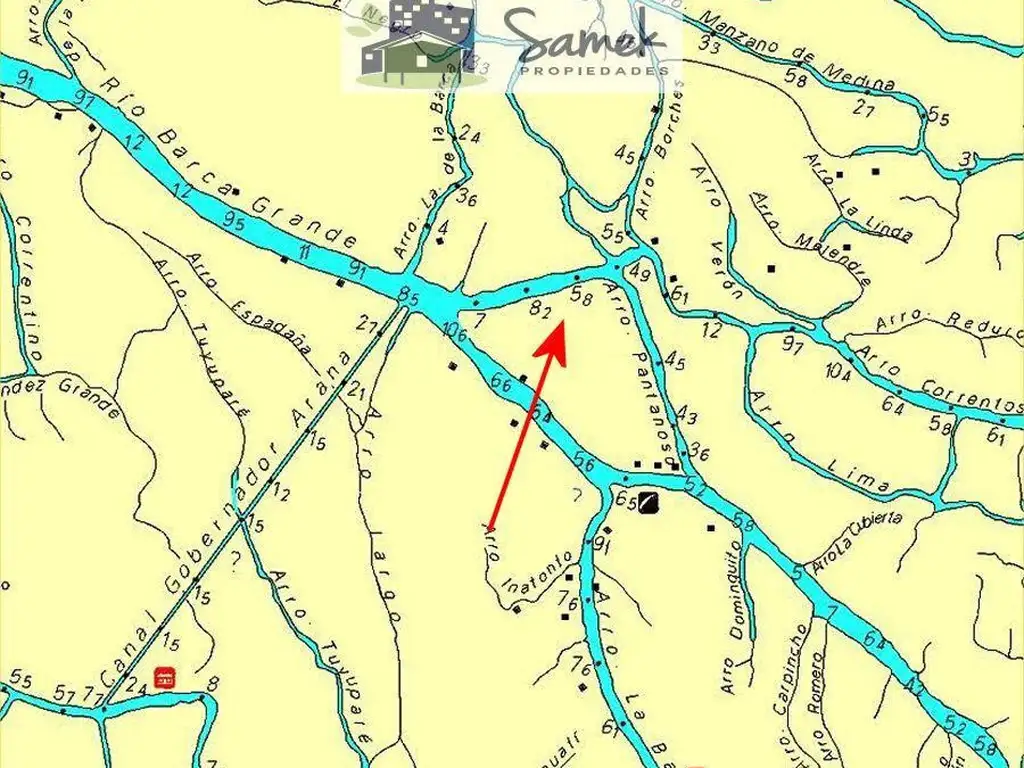 Medidas: 900 metros de frente al Correntoso y 750 metros de frente al Arroyo Pantanocito.