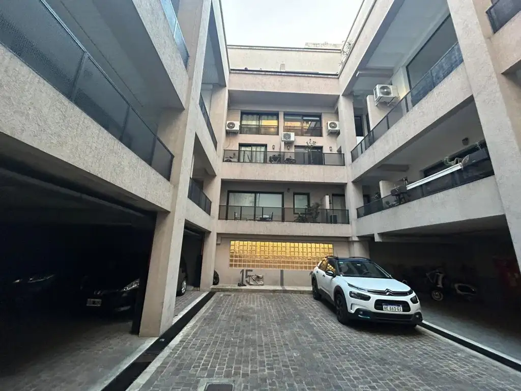 Cochera descubierta en el pulmón del edificio.