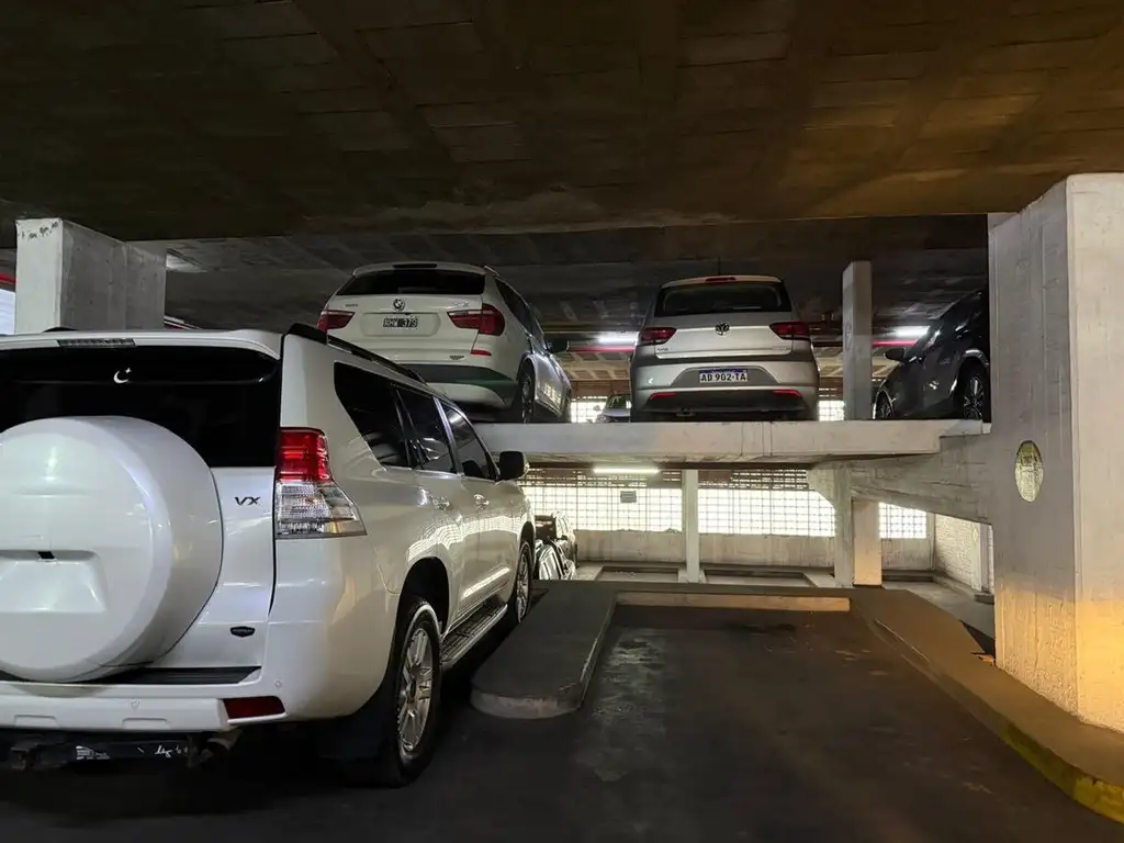 La cochera cuenta con 14,40 m² de superficie exclusiva, espacio cómodo para autos grandes y medianos, y se encuentra en un edificio con ingreso vehicular amplio y circulación interna eficiente.