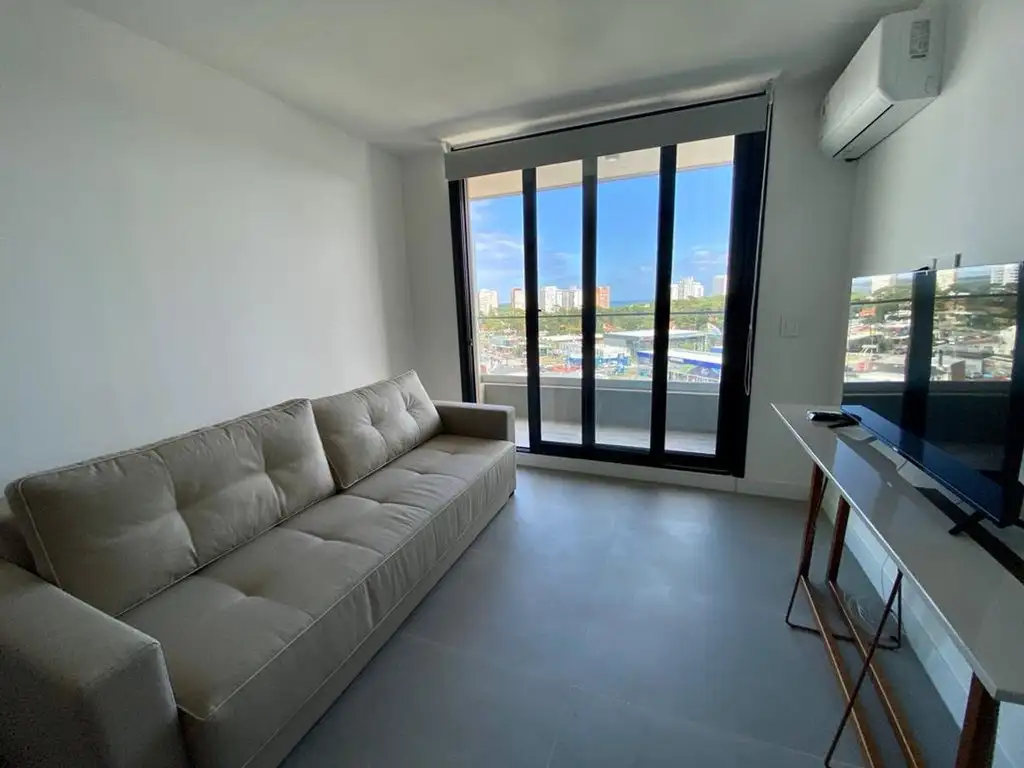 Cómoda unidad para 3 personas, living comedor con salida a la terraza, cocina integrada, 1 dormitorio y medio, 1 baño, garaje en subsuelo. Aire Acondicionado en ambientes.