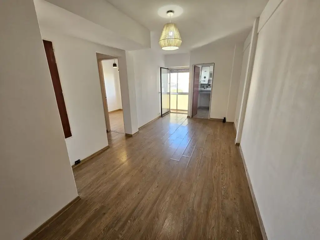 Living comedor con pisos de flotante, salida al balcon y dos placares empotrados. Balcon con cerramiento y vista abierta a la ciudad. Dormitorio con placard. Cocina reciclada con alacenas, mesada de granito, espacio para heladera y lavarropas de carga frontal.