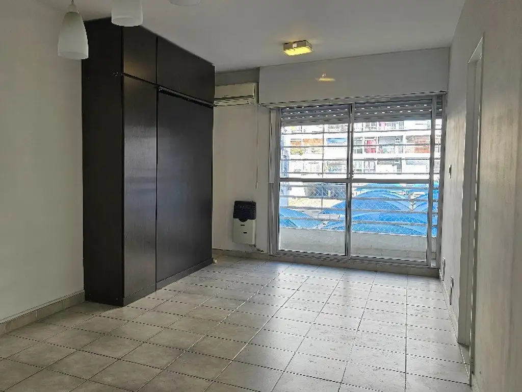 incorporado y espacio para comedor diario), muy luminoso, ubicado al contrafrente (por ello muy silencioso), equipo de aire acondicionado y estufa de tiro balanceado. El ambiente cuenta con un placard de dos puertas y otro mueble de guardado que tiene una cama revatible incorporada.