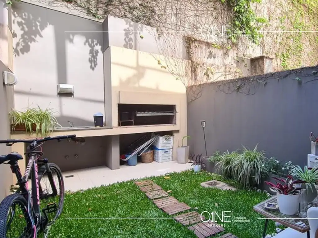 1 ambiente apto profesional con jardín con césped natural (grama) parrilla.-