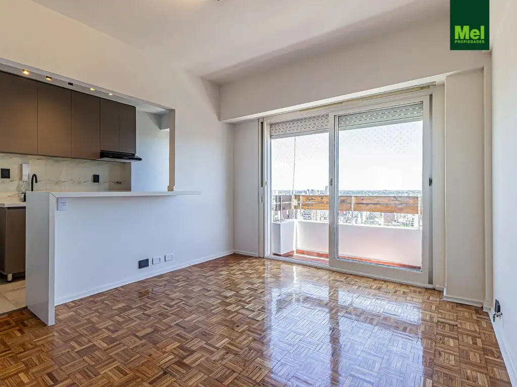 Excelente dos ambientes totalmente reciclado, con cochera fija y una vista abierta inigualable sobre la ciudad.