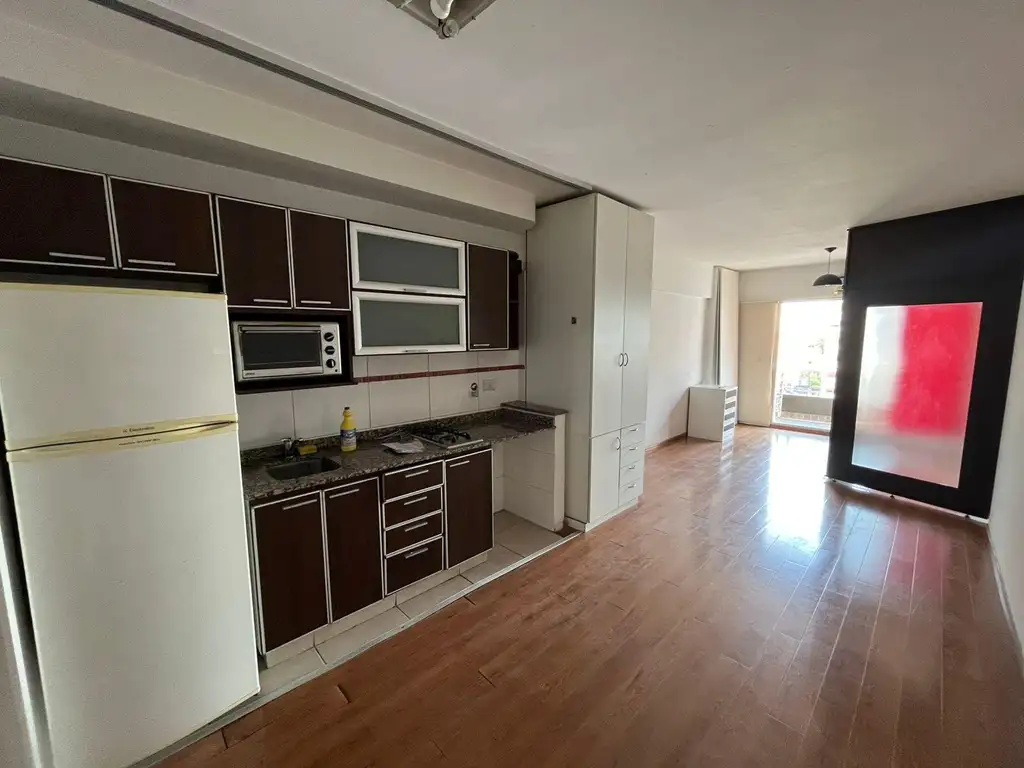 Gran mono ambiente en "L" divisible, cocina incorporada al ambiente