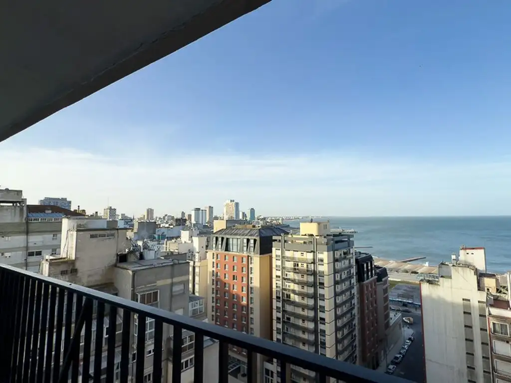 El living-comedor, recientemente reciclado, se integra al balcón corrido que ofrece una visual abierta y limpia hacia la costa. La cocina es separada, cómoda y también cuenta con salida al balcón, lo que aporta ventilación cruzada y una luminosidad destacada.