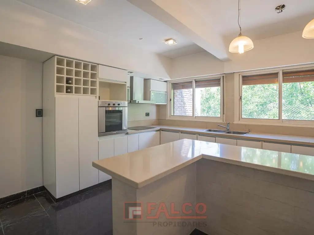 En la cocina se encuentra el segundo ingreso. La misma cuenta con barra desayunadora. Equipada con horno eléctrico y anafe de vitrocerámico. Pisos de porcelanato.