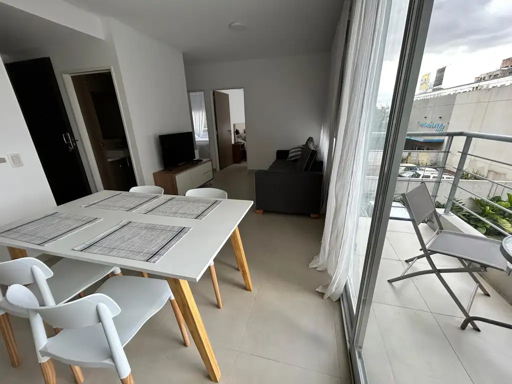 Living comedor con grandes ventanales doble vidrio con salida al balcón.