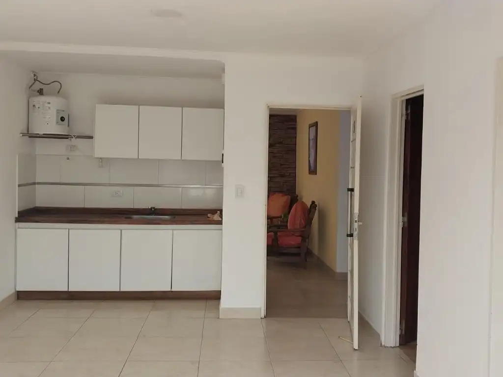 Living comedor con cocina integrada, equipada con mesada y bajo mesada (no posee anafe).