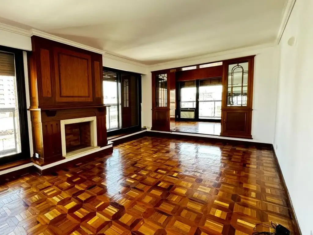 * Amplio living con hogar a leña, comedor y escritorio con salida a balcón terraza.