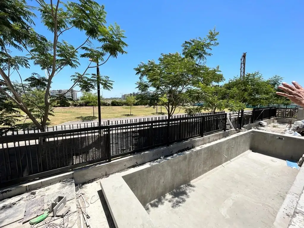 El complejo posee dos piscinas, SUM, cocheras de cortesía, el barrio cuenta con seguridad las 24 hs. - Mat.