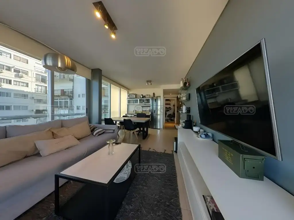 Espacioso living comedor con cocina integrada. Luminoso orientado al este. Dos dormitorios, el ppal en suite, toilette y balcón corrido.